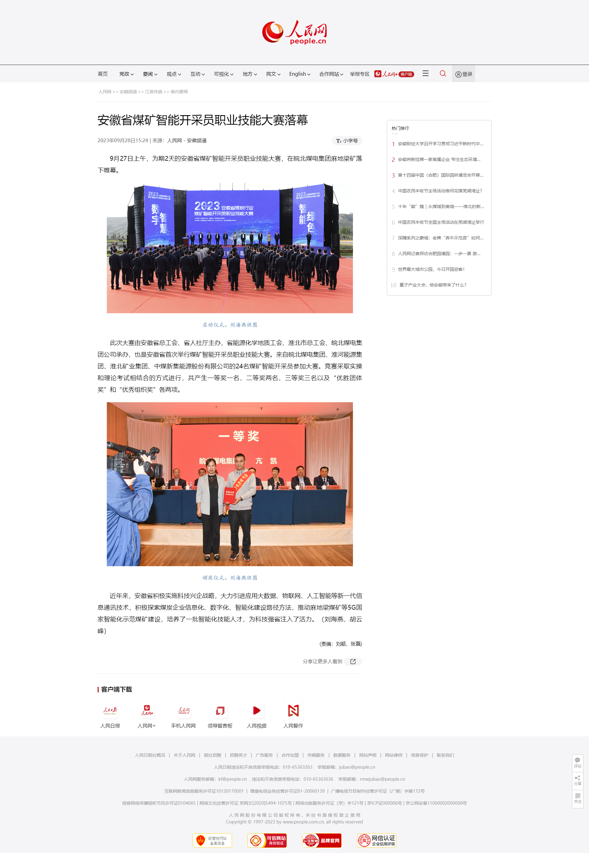 9月28日人民網(wǎng):安徽省煤礦智能開采員職業(yè)技能大賽落幕