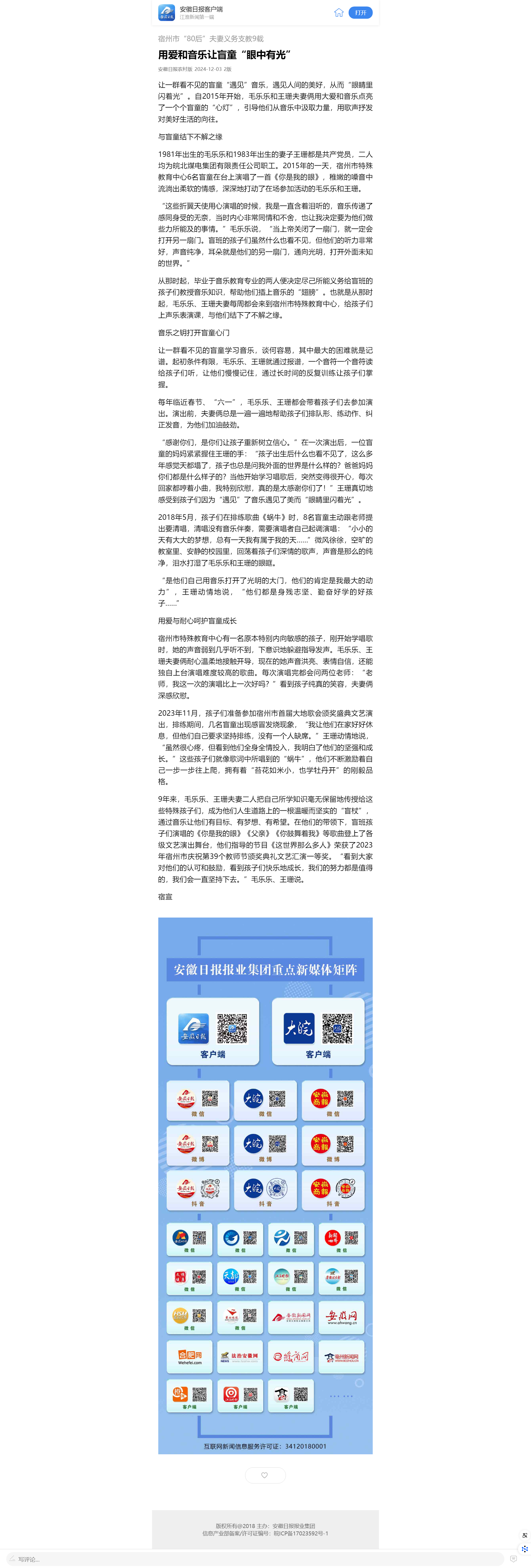 12月3日安徽日?qǐng)?bào)客戶端:用愛(ài)和音樂(lè)讓盲童“眼中有光”