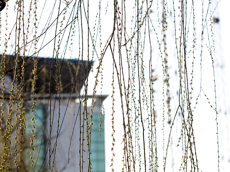 暖暖春風(fēng)撫柳而來,攬得生靈陶醉。初春之際,不如趁復(fù)蘇的預(yù)備期先一步尋芳。走過籃球場,便是任樓礦的天然氧吧——怡和園了。走進(jìn)怡和園,草地上的小草正努力拱開厚厚的棉被,樹上蔥蔥,仿佛一切都在迎接著春天的到來。半年前,剛到任樓礦那天,我們同批入職的大學(xué)生結(jié)伴秋游了怡和園,八仙池邊的柳枝綠得亮眼,現(xiàn)如今綠絳成了金絲,煥發(fā)著新芽,依舊垂在岸邊。只不過相較那時候的“身份”和心境都大不相同,當(dāng)時我還說起幼時頑皮,常將柳條折枝,大把放在書包里,“抽皮去骨”做哨笛吹,早晨學(xué)著鳥叫聲啁啾著蹦蹦跶跶去上學(xué)……
